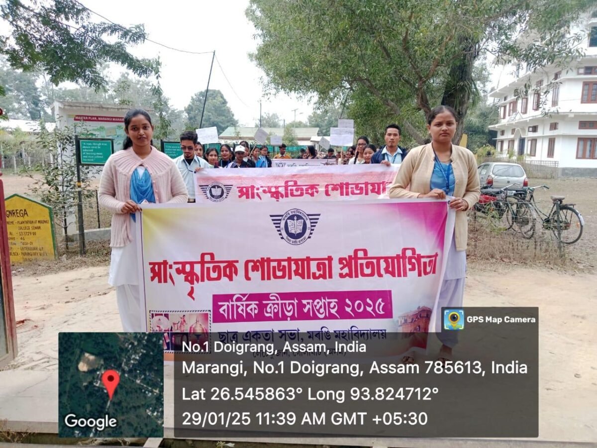 Inauguration of college week on 22.1.25.January 22, 2025Few inauguration clips ofOur news bulletine 7th edition 2024.January 29, 2025 Few clips of cultural procession of college week2025 Share Related postsApril 4, 2025Group Discussion of the 2nd Semester minor and 4th semester minor , department of Education on 4.4.25Read moreApril 3, 2025The NSS unit of Marangi Mahavidyalaya Organised an art competition for the students of Gidi Basti LP School. This event was likely part of the NSS community outreach and engagement initiatives, aimed at promoting creativity and self-expression among local school children.Read moreApril 2, 2025NSS Special camp -2025 Day 2 : plantation program Venue: Gidi Basti LP SchoolRead more