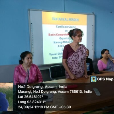 Innaugural certificate course on Basic Computer Application,organized by Marangi Mahavidyalaya.24th Setember 2024.