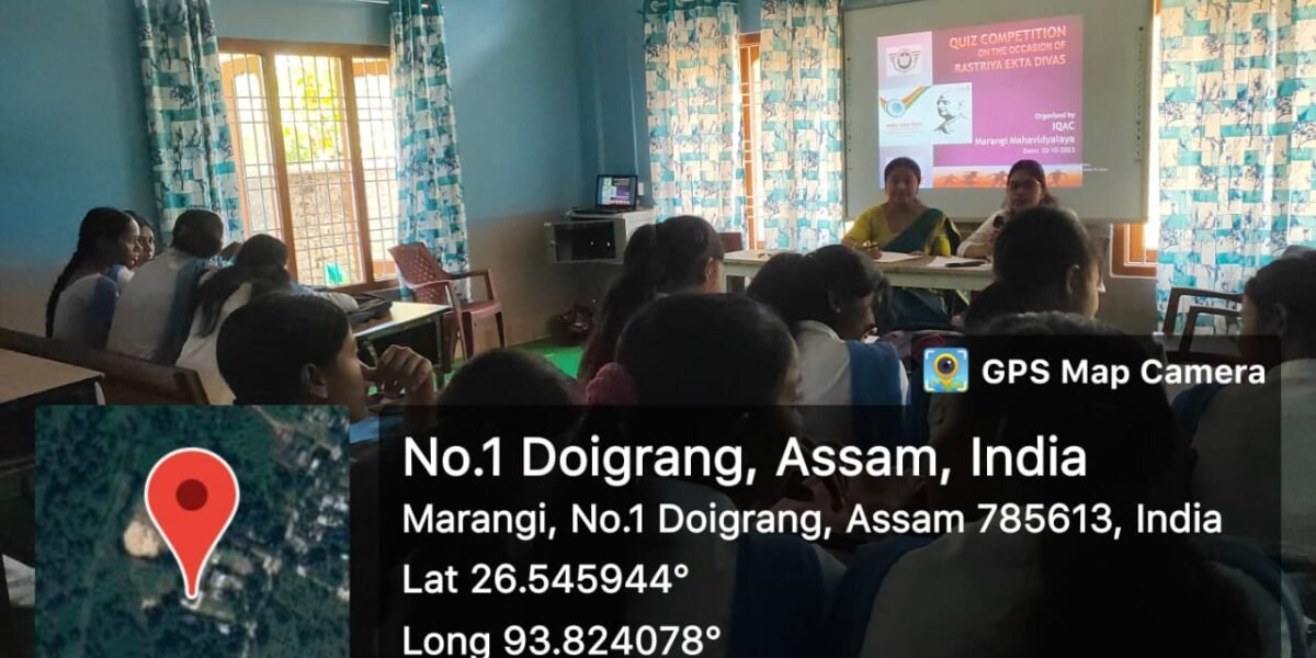 Celebration of national unity day by NSS unitNovember 2, 2023Inauguration of political science departmental magazine ‘CHANAKYA’. On 31.10 2023November 2, 2023 Quize competition on the occassion of Rastriya Ekta Divas on. 30.10.23 Share Related postsApril 4, 2025Group Discussion of the 2nd Semester minor and 4th semester minor , department of Education on 4.4.25Read moreApril 3, 2025The NSS unit of Marangi Mahavidyalaya Organised an art competition for the students of Gidi Basti LP School. This event was likely part of the NSS community outreach and engagement initiatives, aimed at promoting creativity and self-expression among local school children.Read moreApril 2, 2025NSS Special camp -2025 Day 2 : plantation program Venue: Gidi Basti LP SchoolRead more