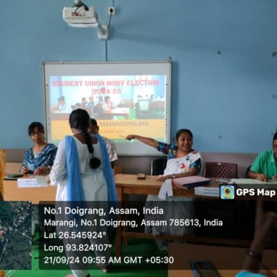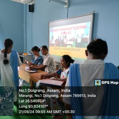 Election resultsSeptember 25, 2024Innaugural certificate course on Basic Computer Application,organized by Marangi Mahavidyalaya.24th Setember 2024.September 25, 2024 Students Union Election 2024-25 Share Related postsApril 4, 2025Group Discussion of the 2nd Semester minor and 4th semester minor , department of Education on 4.4.25Read moreApril 3, 2025The NSS unit of Marangi Mahavidyalaya Organised an art competition for the students of Gidi Basti LP School. This event was likely part of the NSS community outreach and engagement initiatives, aimed at promoting creativity and self-expression among local school children.Read moreApril 2, 2025NSS Special camp -2025 Day 2 : plantation program Venue: Gidi Basti LP SchoolRead more