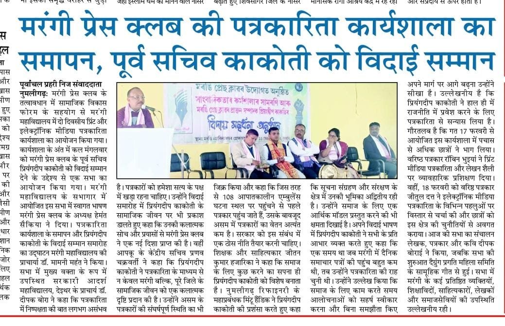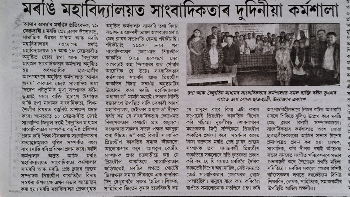 Workshop on Journalism in Electronic and Print Media 17 and 18th February 2025 and certificate distribution on 19th Feb 2025February 17, 2025Closing ceremony of workshop on journalismFebruary 19, 2025 Workshop on Journalism in Electronic and Print Media 17 and 18th February 2025 and certificate distribution on 19th Feb 2025 Share